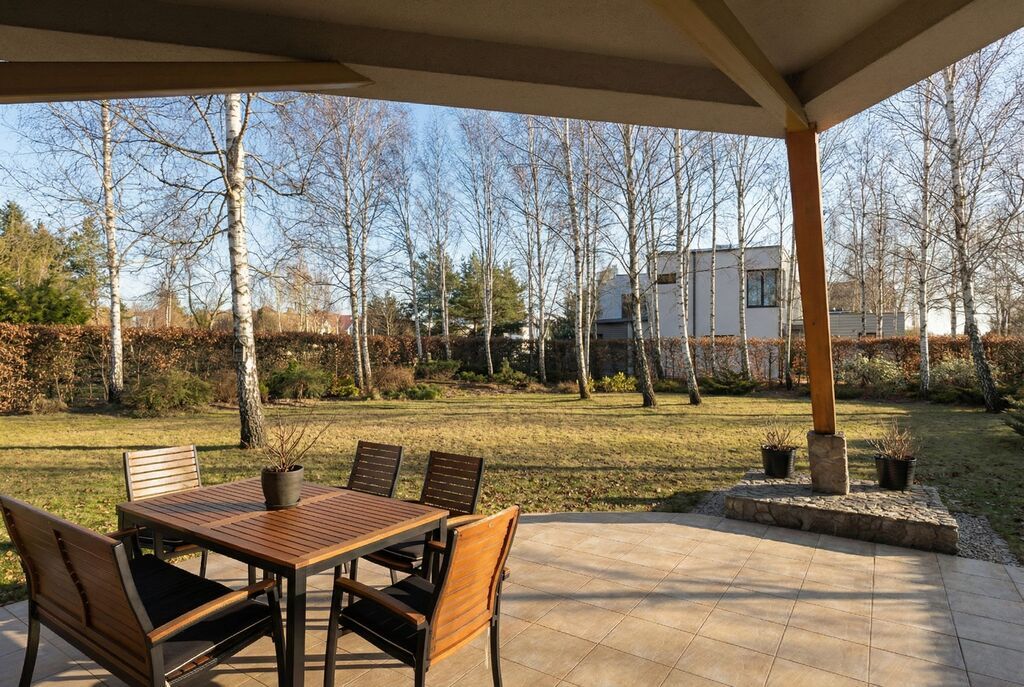 Przestrzenią łączącą ogród z częścią dzienną domu jest przestronny, zadaszony taras (ok. 35 m2).
