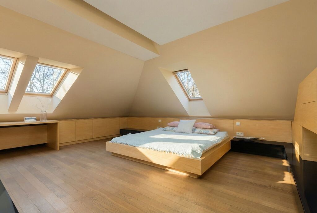 salon z jadalnią i kuchnią oraz 5 sypialni, 2 łazienki, pralnia, garderoba i garaż