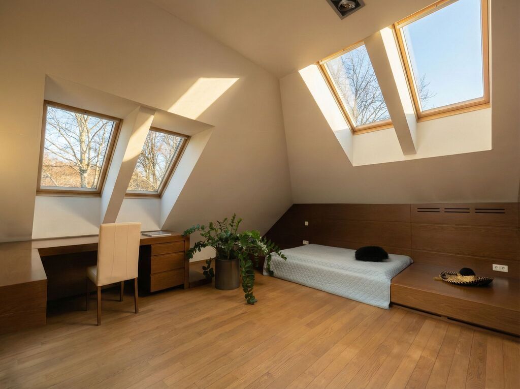 KIERUNEK OKIEN: większość okien w domu wychodzi na stronę południową i zachodnią (w tym okna w części dziennej, w kuchni i we wszystkich sypialniach).