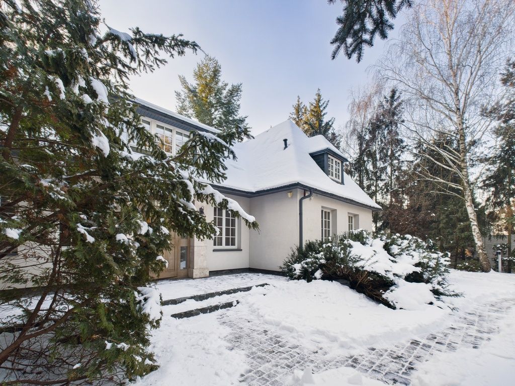 Komfortowy, wysokiej jakości dom dla wymagających. Oprócz głównego budynku o całkowitej powierzchni 471 m2 jest drugi budynek z potrójnym garażem (miejsca na 3 samochody) wraz z dwoma mieszkaniami o łącznej powierzchni 160 m2 jako dom gościnny lub dla pracowników.
