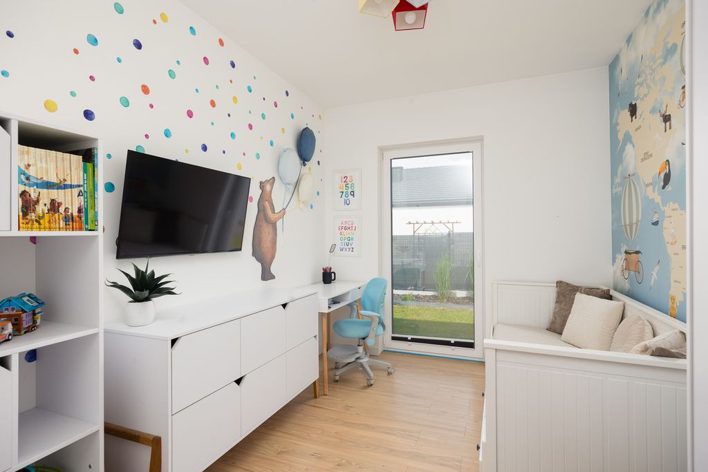 Dwie dodatkowe sypialnie stanowią funkcjonalne przestrzenie, które doskonale sprawdzą się jako pokoje dziecięce, gościnne lub domowe gabinety. Pomieszczenia są umeblowane i gotowe do indywidualnej aranżacji zgodnie z potrzebami mieszkańców.