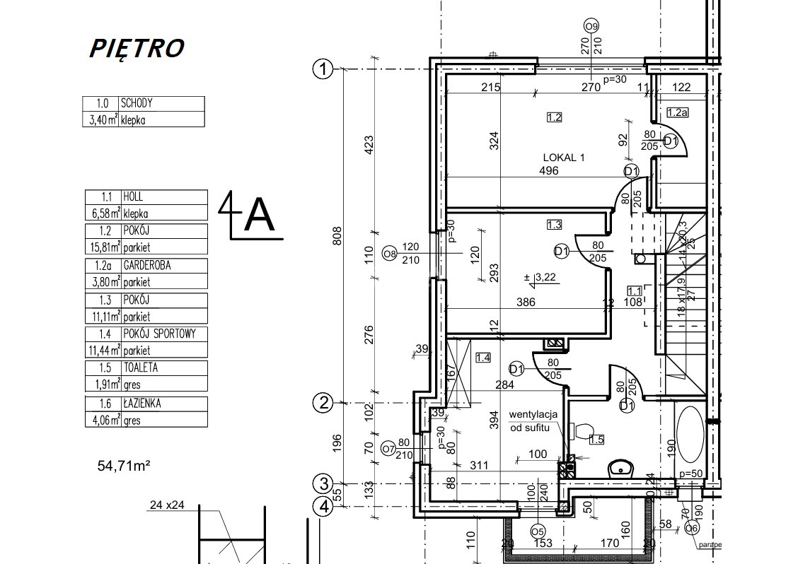 Zaprojektowany budynek ma następujący rozkład pomieszczeń: