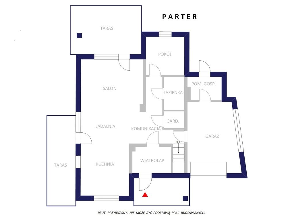 Parter – wygodna przestrzeń dzienna i użytkowaParter stanowi komfortową, dobrze doświetloną przestrzeń dzienną, w której salon z wyjściem na taras harmonijnie łączy się z kuchnią i jadalnią. To miejsce sprzyjające zarówno codziennemu życiu, jak i spotkaniom z bliskimi.
