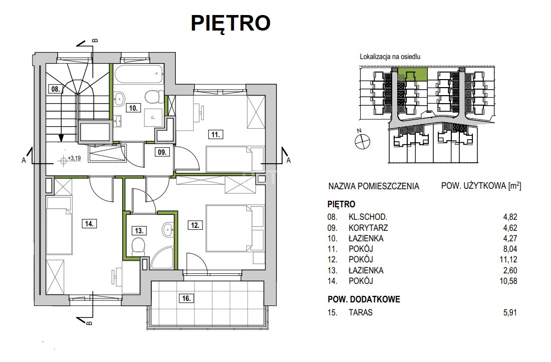 • Piętro: trzy przestronne sypialnie, łazienka ogólna.