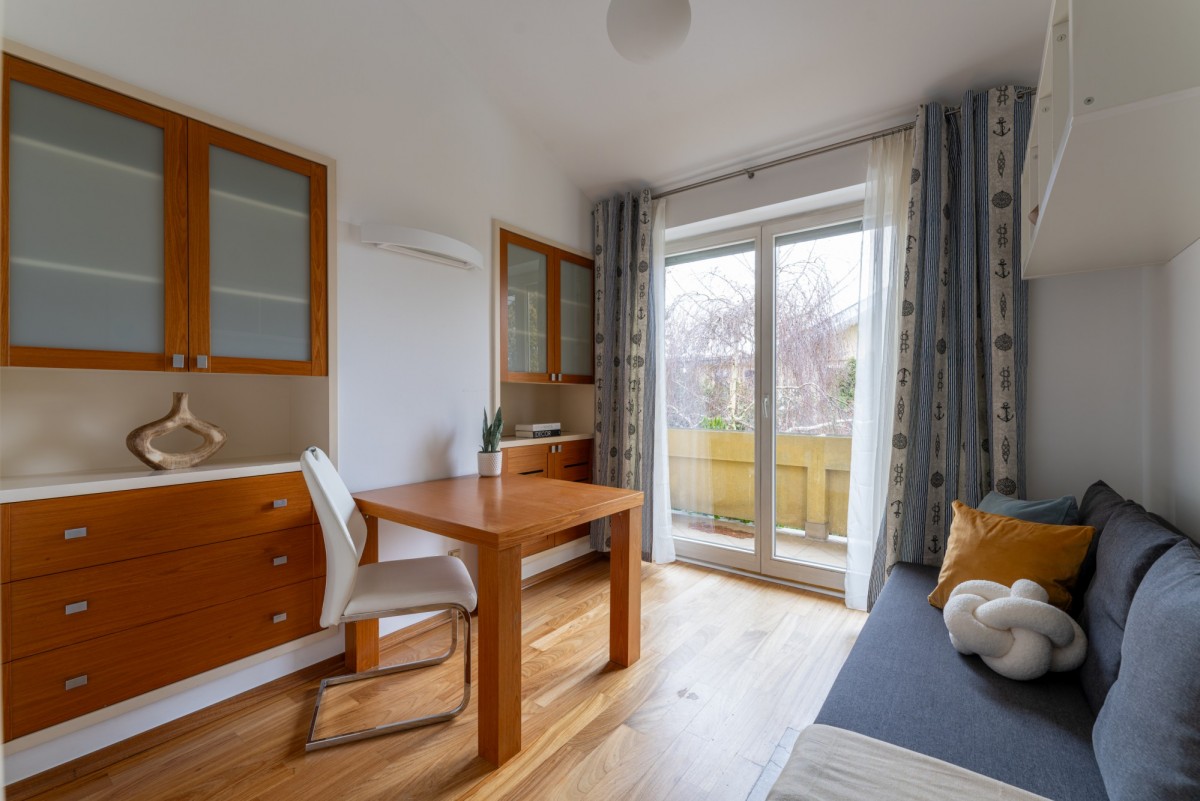 Lokalizacja to ogromny atut tej nieruchomości. W zasięgu krótkiego spaceru znajdują się sklepy, szkoły, przedszkola, punkty usługowe, apteki oraz przystanek autobusowy (3 minuty pieszo). Bliskość Lasu Kabackiego daje możliwość aktywnego wypoczynku na świeżym powietrzu.