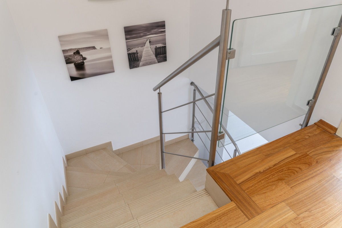 Na parterze znajduje się wiatrołap z wejściem do garażu jednostanowiskowego, toaleta dla gości, jasna otwarta kuchnia oraz przestronny salon z wyjściem do ogrodu. Przed garażem dodatkowo znajduje się zadaszona wiata parkingowa, co zapewnia drugie miejsce postojowe.