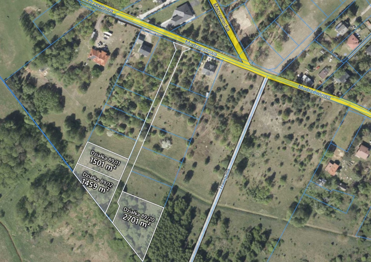 Oferujemy do sprzedaży również sąsiednie działki - nr ewid. 89/11 (1501m2) oraz 89/20 (2701m2).
