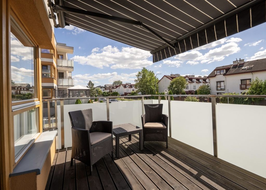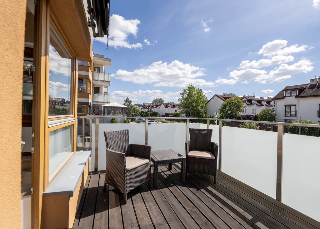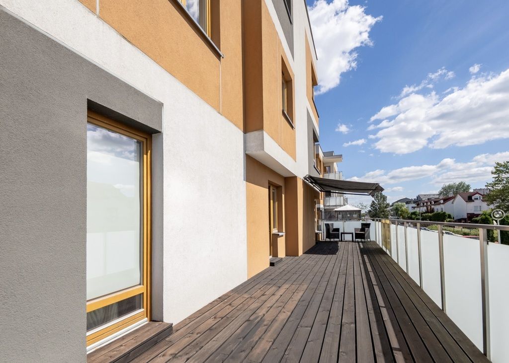 Na powalający 40 - metrowy taras można wyjść z każdego z trzech pokoi.