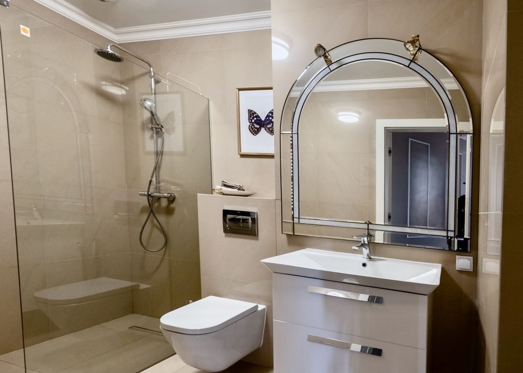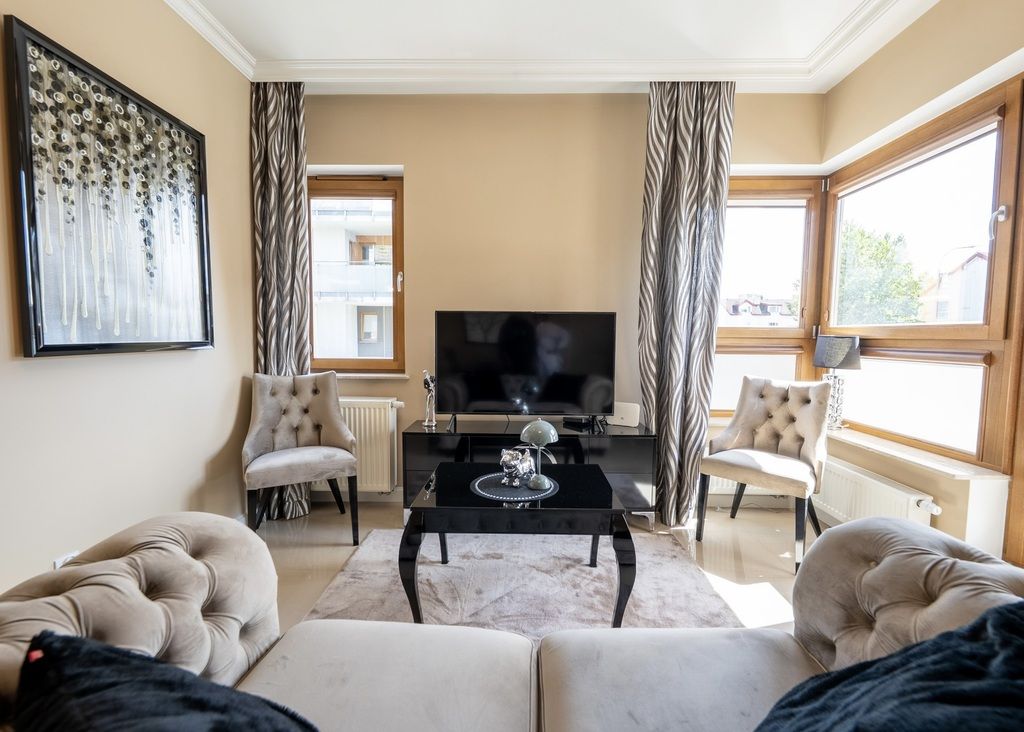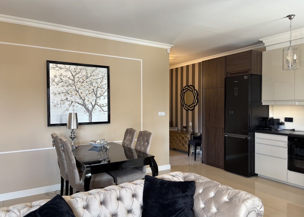 Nieruchomość emanuje elegancją w stylu glamour. Mieszkanie jest eleganckie, urządzone ze smakiem.