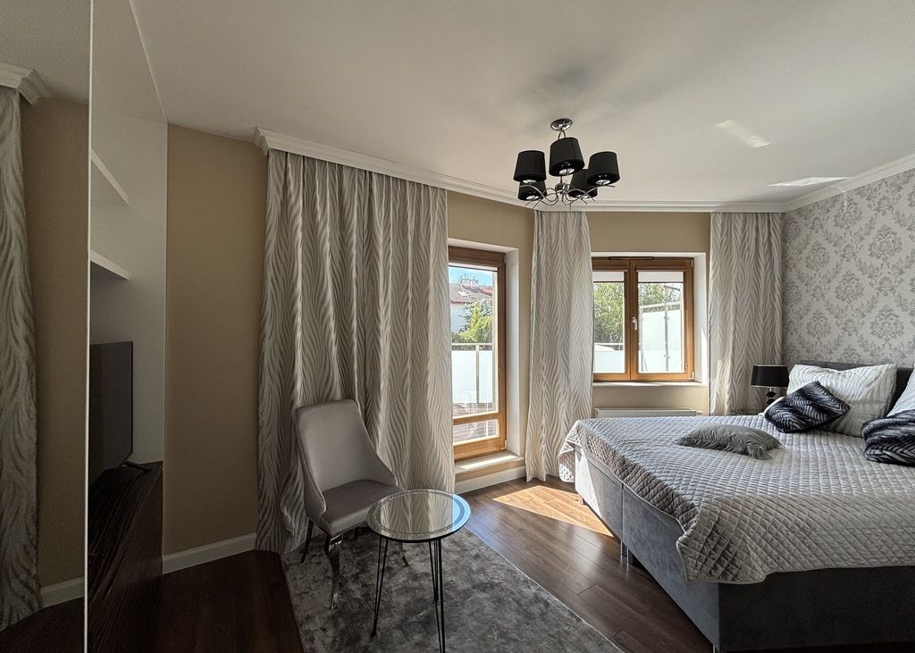 • sypialni z dużym wygodnym łóżkiem, pojemną zabudowaną szafą oraz toaletką,