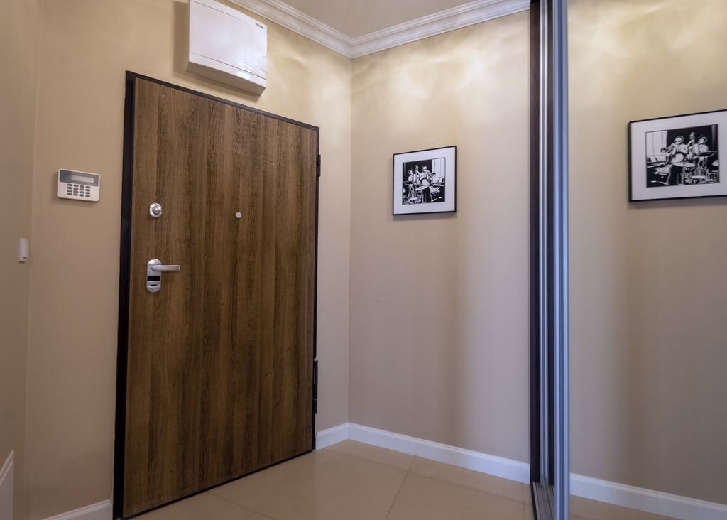 • przedpokoju z dużą zabudowaną szafą z ogromnym lustrem,
