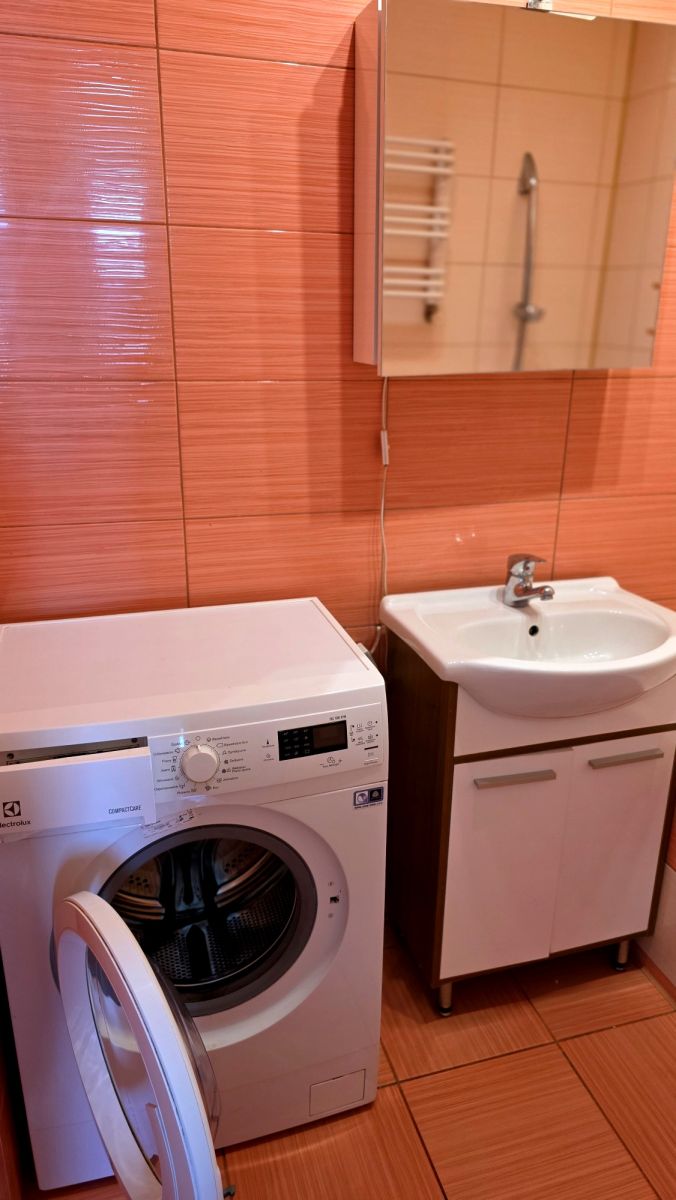 - łazienki z wanną, umywalką, pralką