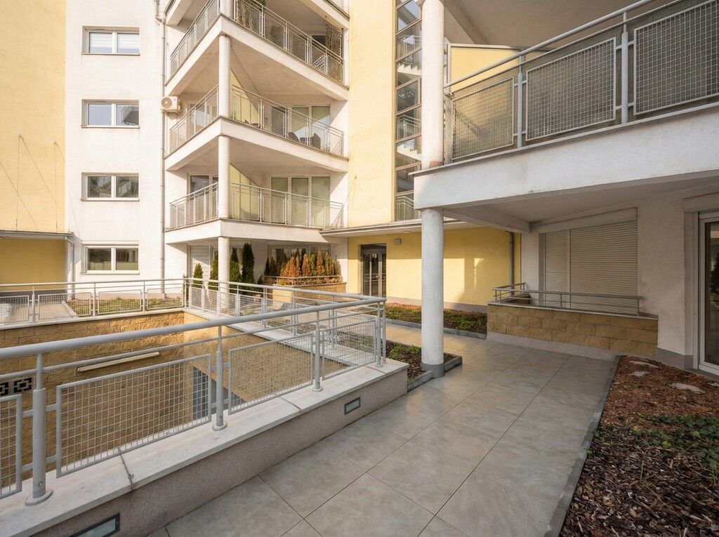 Mieszkanie posiada funkcjonalny układ pomieszczeń. Balkon jest oszklony z możliwością otwarcia, co pozwala korzystać z niego przez większą część roku. Lokal jest cichy, ponieważ okna wychodzą na wewnętrzne patio z zielonym trawnikiem i zadbaną przestrzenią wspólną, oddaloną od ruchu ulicznego.