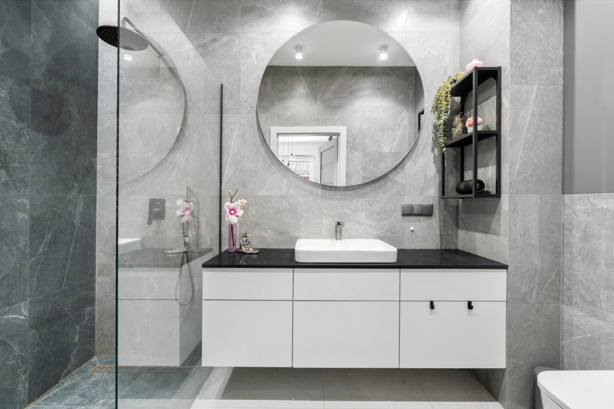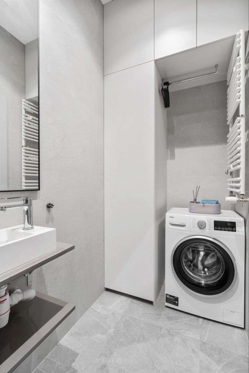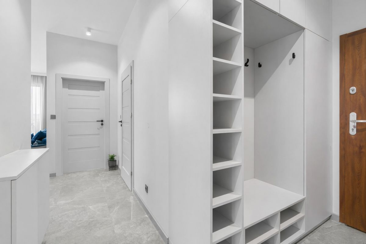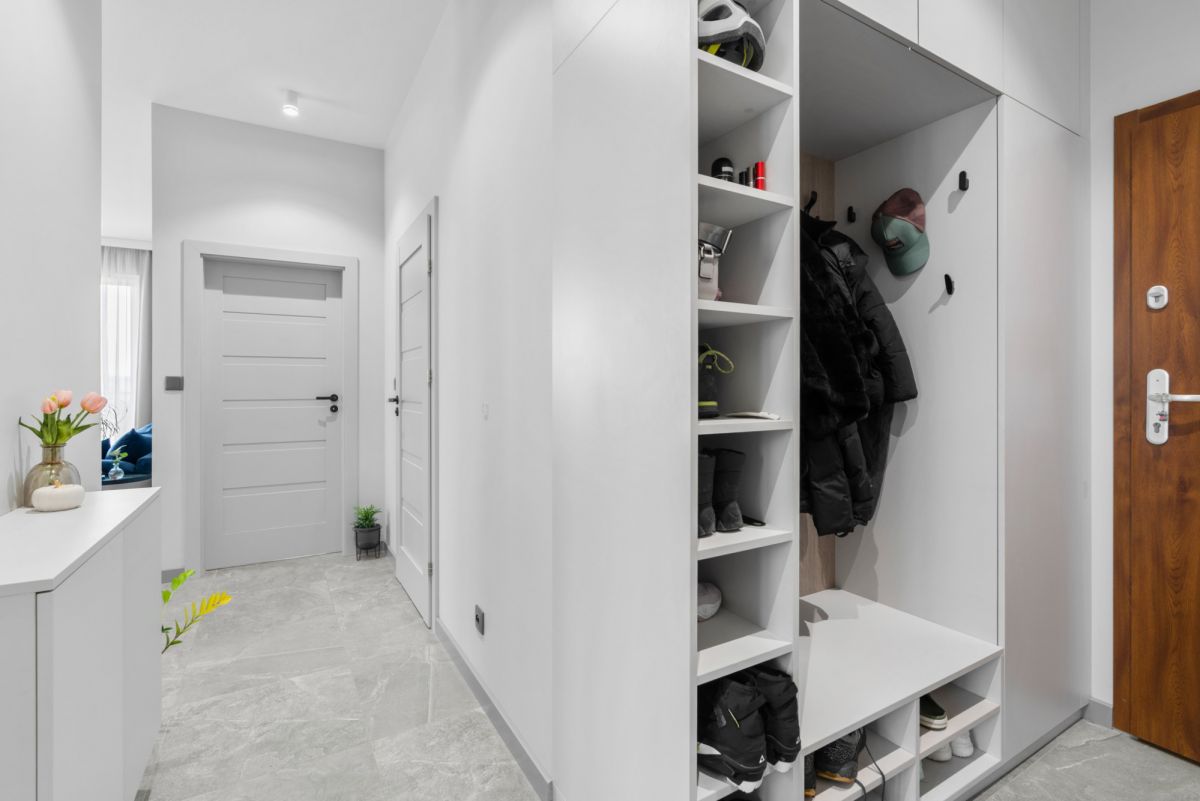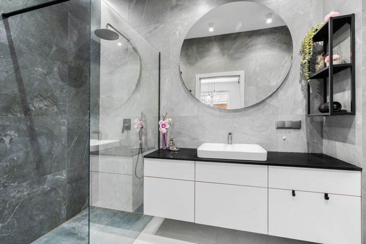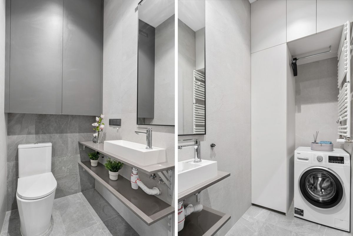 elegancka łazienka oraz funkcjonalna przestrzeń komunikacyjna