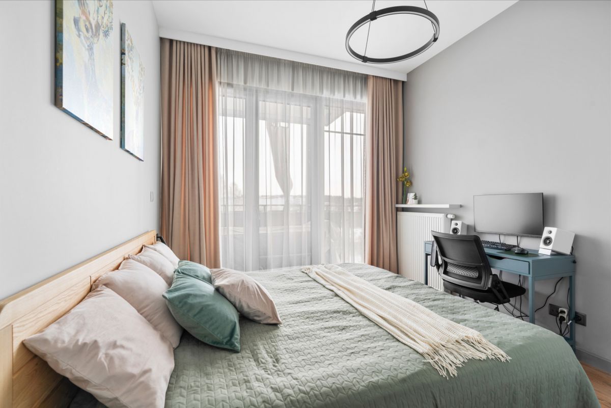 drugi pokój, który świetnie sprawdzi się zarówno jako pokój dziecięcy, jak i gabinet do pracy zdalnej