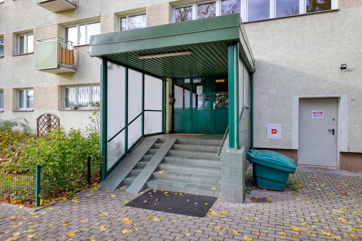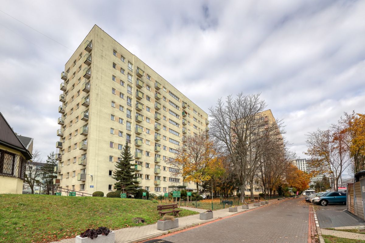 Budynek, w którym znajduje się mieszkanie to blok z lat 70-tych zarządzany przez prężnie działającą spółdzielnię. Części wspólne są zadbane, w budynku znajdują się dwie windy. Posiada udogodnienia dla niepełnosprawnych. Okolica jest spokojna, zielona, z placami zabaw i boiskami.