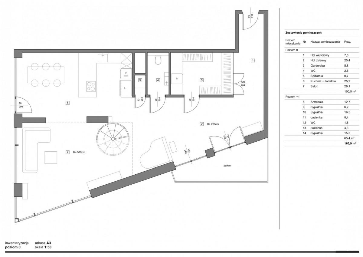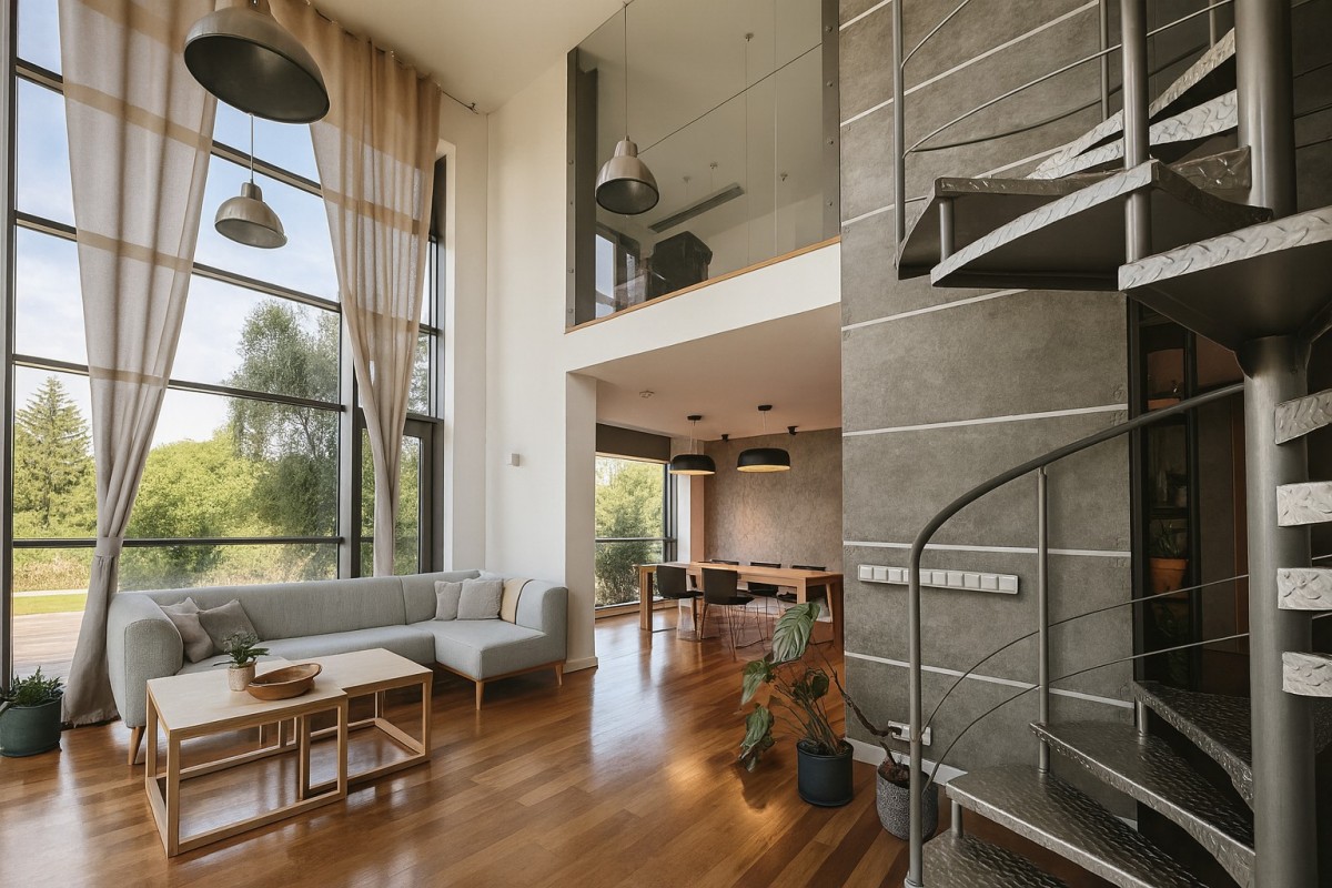 Designerski apartament w loftowym stylu z balkonem i komórką lokatorską