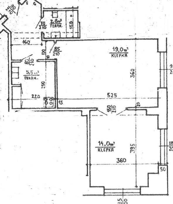 - salon z aneksem kuchennym 19 m2 + 5,5 m2 razem 24,5 m2