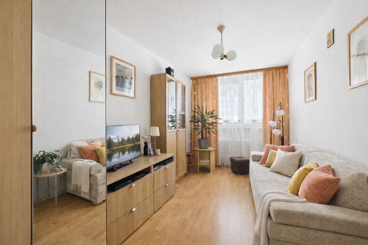 Na sprzedaż funkcjonalne i w pełni gotowe do zamieszkania mieszkanie o powierzchni 43,4 m², położone na 4. piętrze w 4-piętrowym budynku z 1970 roku. Lokal znajduje się na spokojnym, zielonym osiedlu z parkingiem dla mieszkańców za szlabanem.