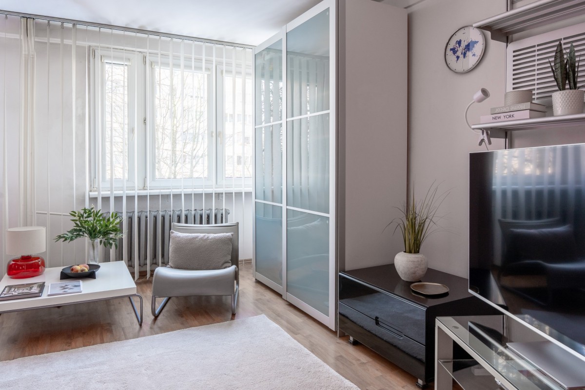 sprawiają, że z powodzeniem można znaleźć tutaj przytulny azyl po długim dniu. Mieszkanie nie posiada balkonu ani