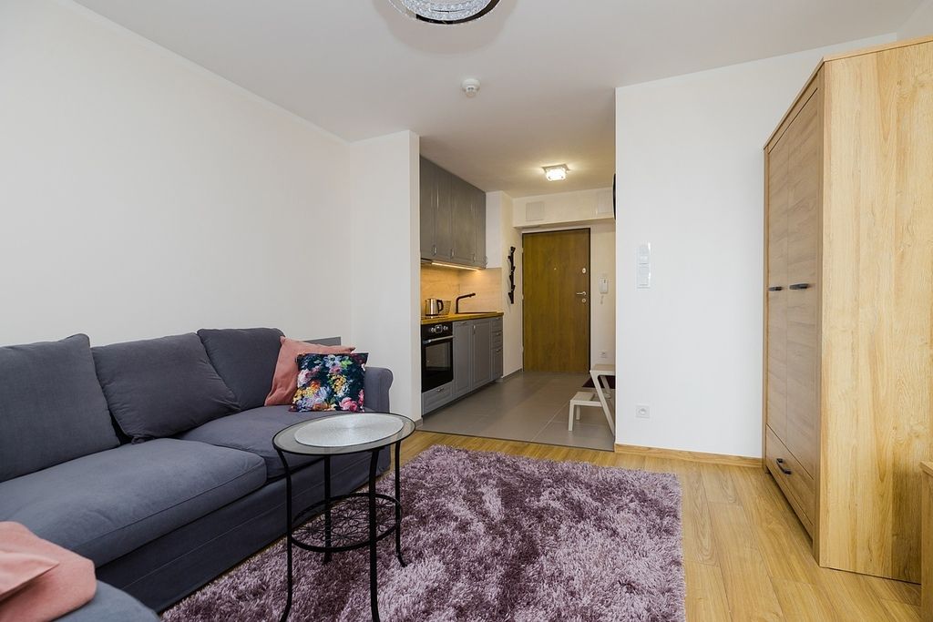 Mieszkanie znajduje się na 2. piętrze nowoczesnego bloku, z całodobową ochroną. Idealne dla singla ceniącego sobie spokój, wygodę i bliskość natury.