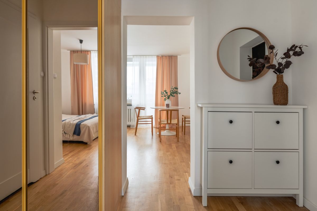 - przedpokoju z szafą w zabudowie