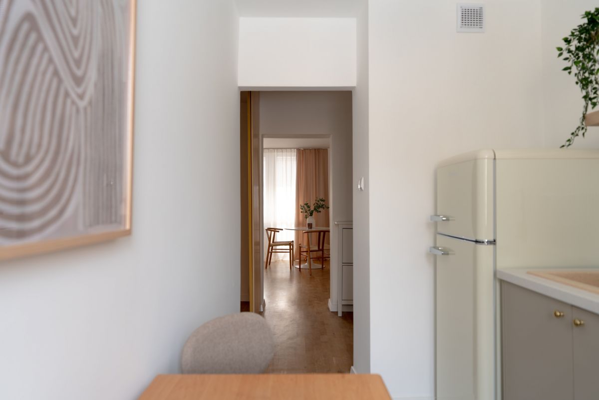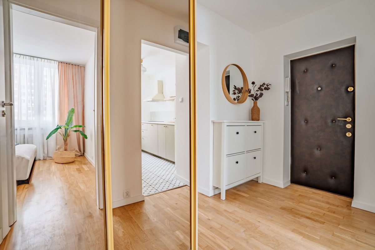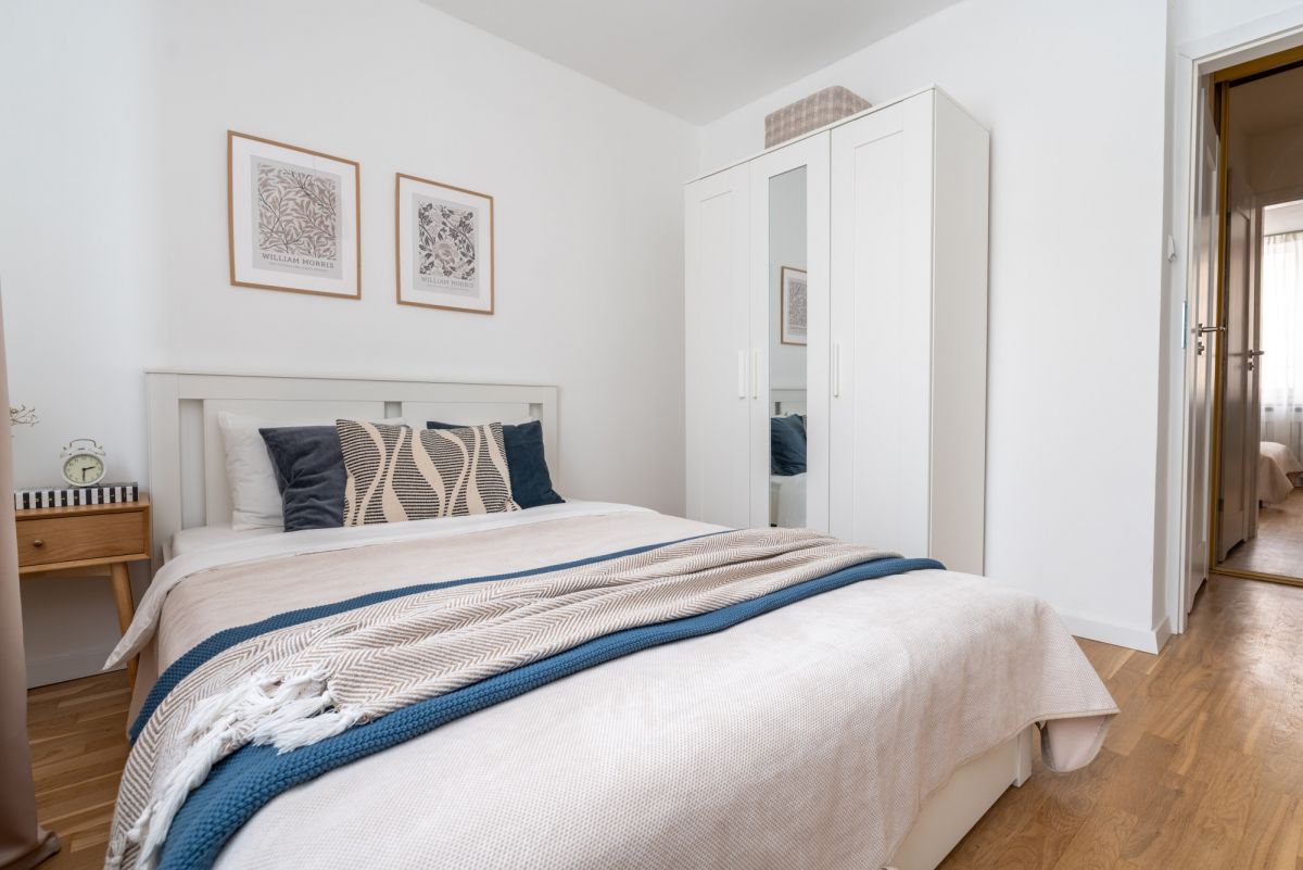 Mieszkanie zostało zaprojektowane i wykończone z dbałością o najmniejszy detal. Jest w pełni umeblowane i wyposażone w niezbędne sprzęty AGD. W sypialni znajduje się łóżko o wymiarach 140x200 cm z wygodnym materacem, oraz pojemna szafa. W salonie znajdziemy wygodną rozkładaną sofę z funkcją spania, pojemną komodę, stół i krzesła, oraz komfortowe miejsce do pracy zdalnej. W kuchni została zamontowana nowa zabudowa kuchenna i sprzęty AGD (lodówka, zmywarka, płyta indukcyjna).