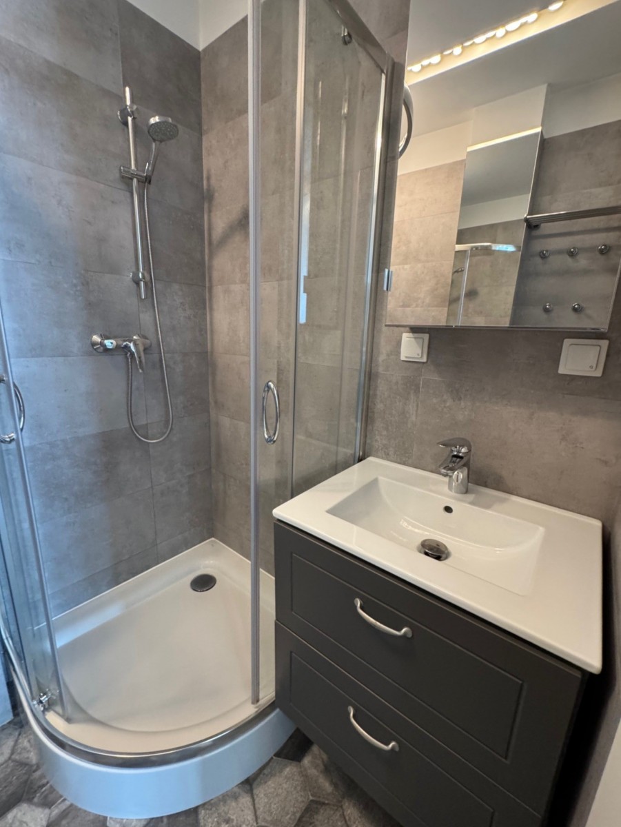 Mieszkanie jest wykończone materiałami o wysokiej jakości oraz w pełni wyposażone. Przestronne i eleganckie.