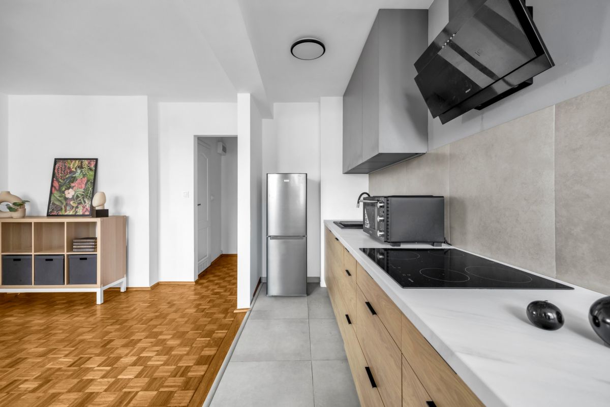 Mieszkanie przeszło remont i zostało wykończone w estetycznym, nowoczesnym stylu.