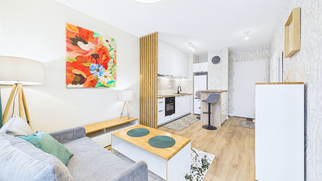 Dwupokojowe mieszkanie z miejscem parkingowym w garażu dostępne od zaraz.Mieszkanie na 1 piętrze (z windą) w nowym budynku położonym przy ulicy Głębockiej 113 (Warszawa Targówek).Na lokal składają się:- pokój dzienny z aneksem kuchennym (umeblowany i wyposażony)- sypialnia (aneks), aktualnie z rozkładaną kanapą z możliwością wymiany na łóżko- łazienka z prysznicem- przedpokójKoszt najmu:- czynsz najmu 3091zł/mc- czynsz administracyjny 599zł/mc- woda i prąd wg. zużyciaWażne:- mieszkanie dostępne od zaraz- wymagana kaucja (4000zł) oraz udokumentowane dochody- umowa najmu okazjonalnego- miejsce parkingowe (dodatkowo płatne 290zł/mc)