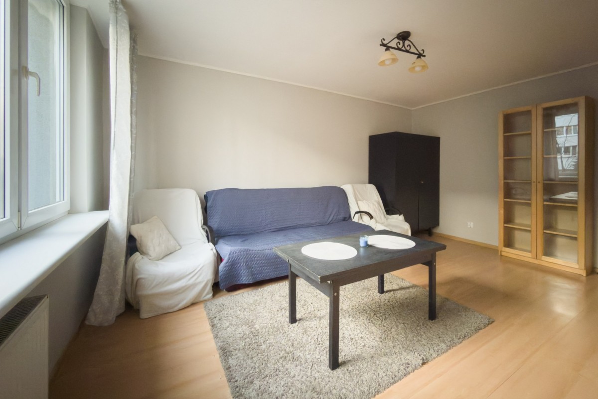 Lokal składa się z pokoju dziennego wyposażonego m.in. w wygodną, rozkładaną kanapę, oddzielnej kuchni z oknem, przestronnej łazienki z kabiną prysznicową i WC oraz niewielkiego przedpokoju z pojemną szafą wnękową.