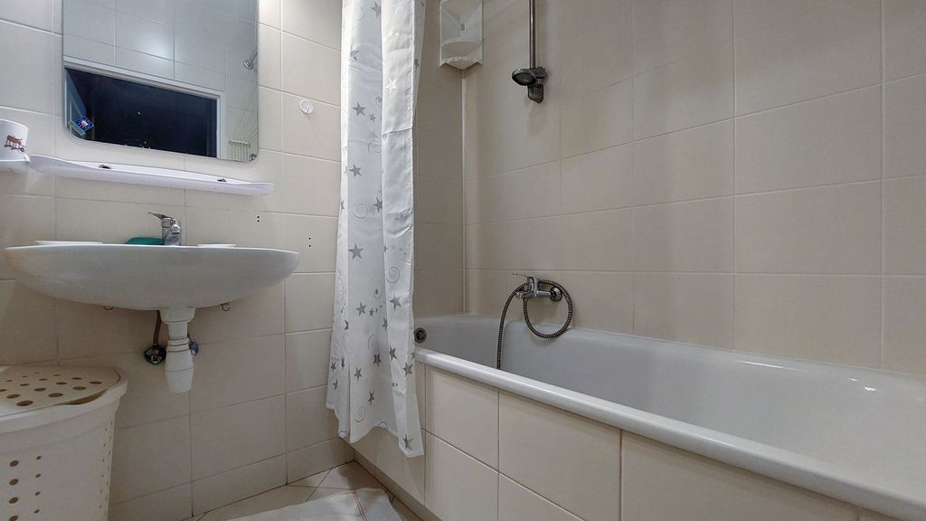 wannę, pralkę, toaletę i szafki do przechowywania. W
