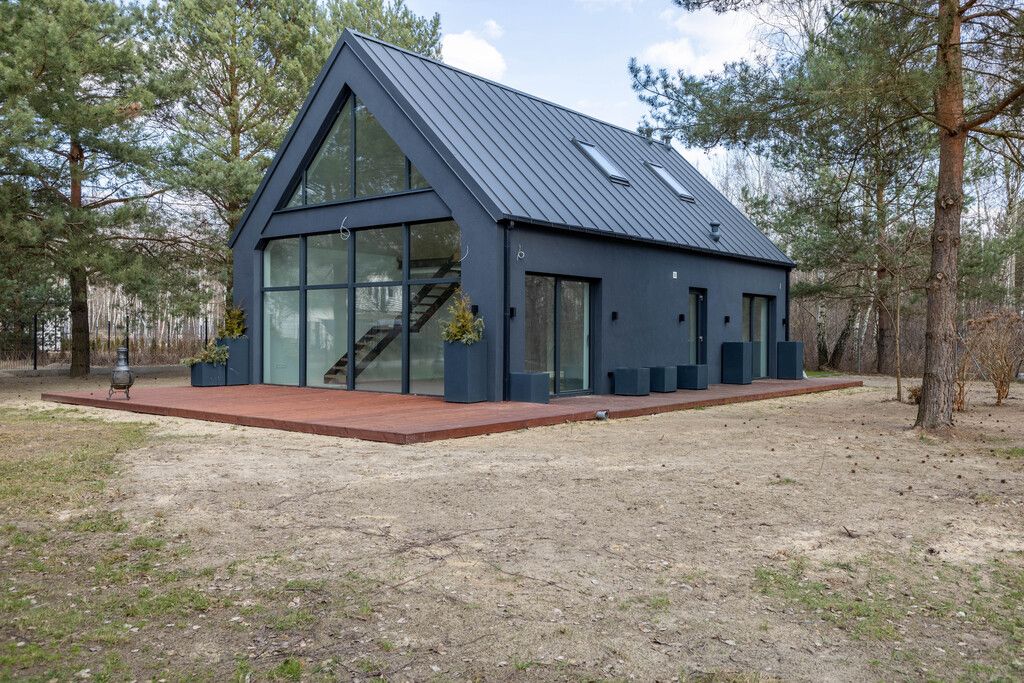 Dom wolnostojący z antresolą o nowoczesnej kubaturze, znajdujący się w pięknej, zielonej i bezpiecznej okolicy w podwarszawskiej miejscowości Czarny Las, gminie Grodzisk Mazowiecki. Nieruchomość w stanie deweloperskim. Idealna propozycja dla rodziny.