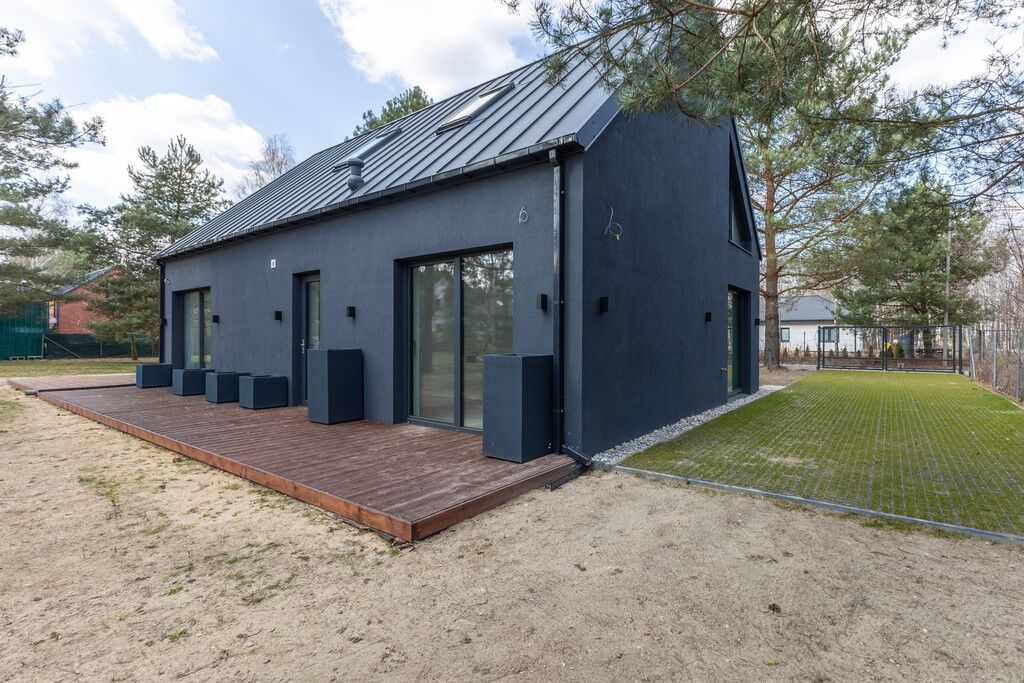 A detached house with a mezzanine and a modern layout, located in a beautiful, green, and safe neighborhood in Czarny Las , near Warsaw, in the Grodzisk Mazowiecki commune. The property is in developer's condition. It's an ideal option for a family.