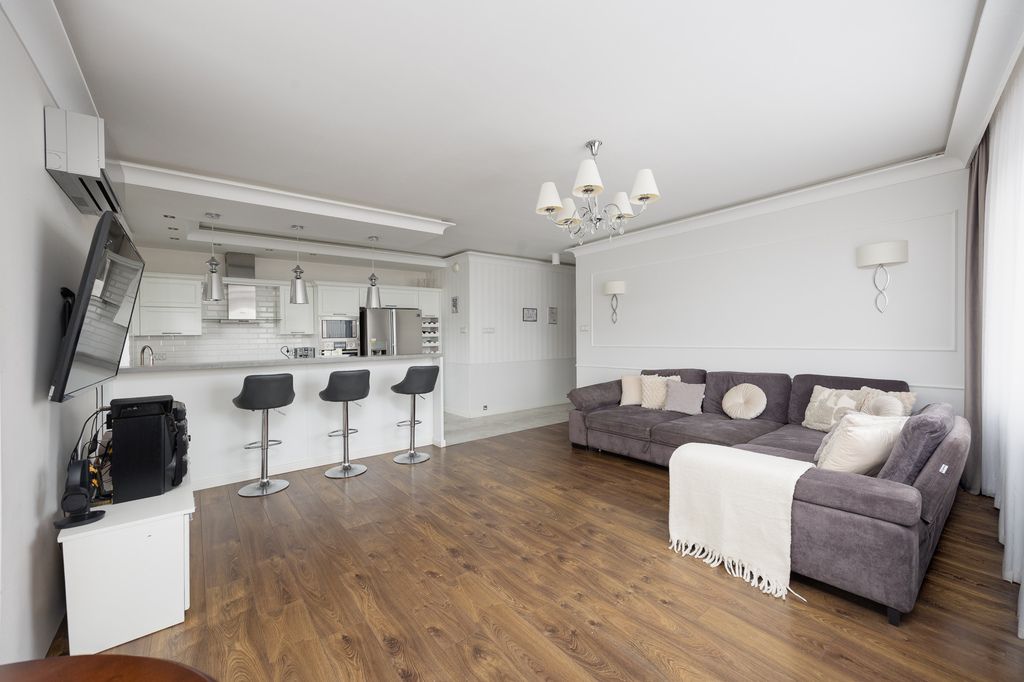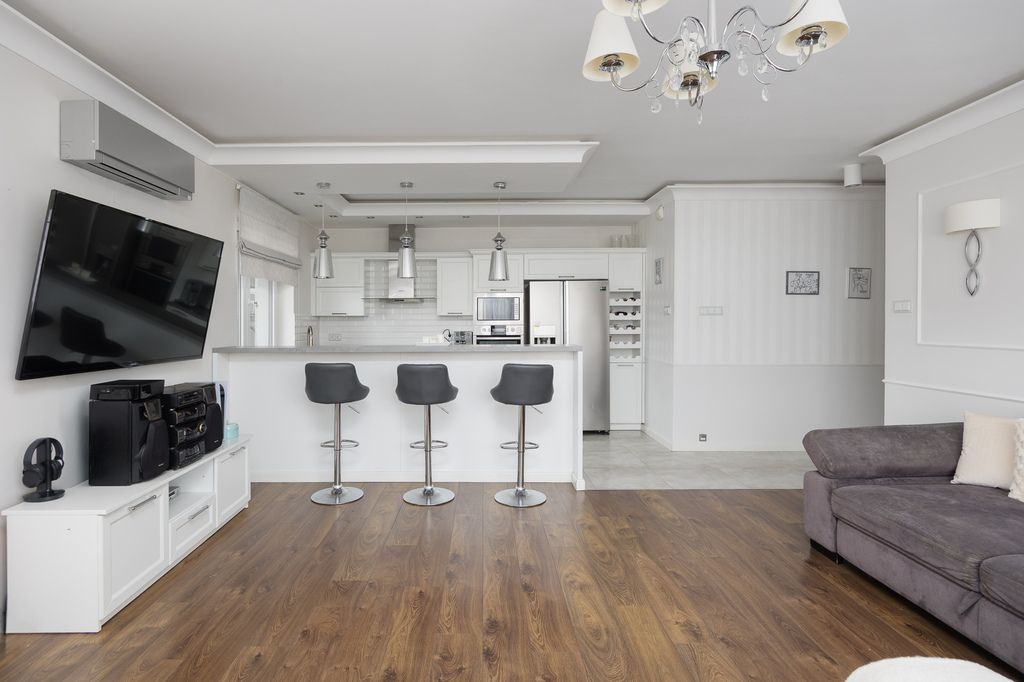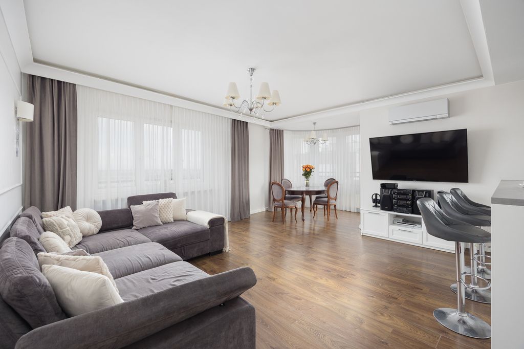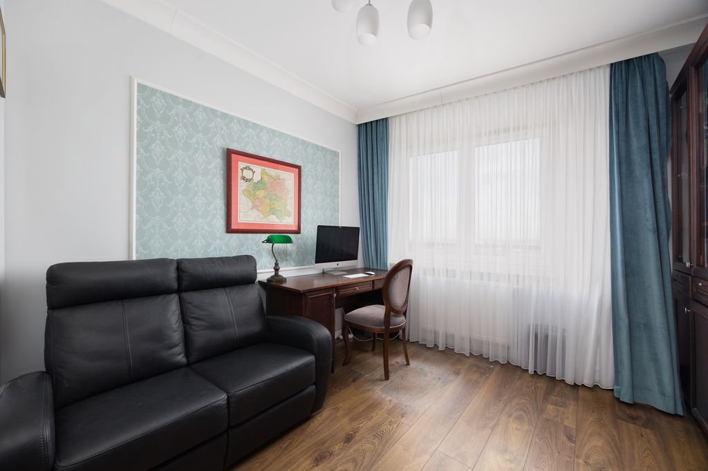 Układ jest bardzo funkcjonalny i wygodny w codziennym użytkowaniu. Przestronny salon z wyjściem na balkon stanowi centralną część mieszkania. Kuchnia jest w pełni wyposażona i gotowa do użytkowania. Do dyspozycji są trzy dodatkowe pokoje, które mogą pełnić funkcję sypialni, pokoi dziecięcych, gabinetu lub pokoju gościnnego. Atutem nieruchomości są dwie łazienki oraz oddzielna garderoba, co znacząco podnosi komfort życia.