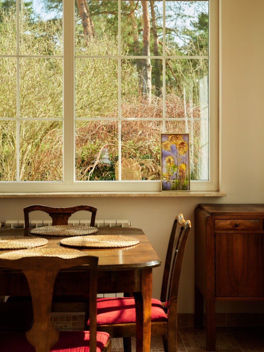 A bright, quiet 65 m², 3-room apartment for rent in Józefów, set in a pre-war świdermajer villa from 1935. Located on the ground floor, it offers a rare three-sided exposure (south, west, north) and a welcoming veranda.