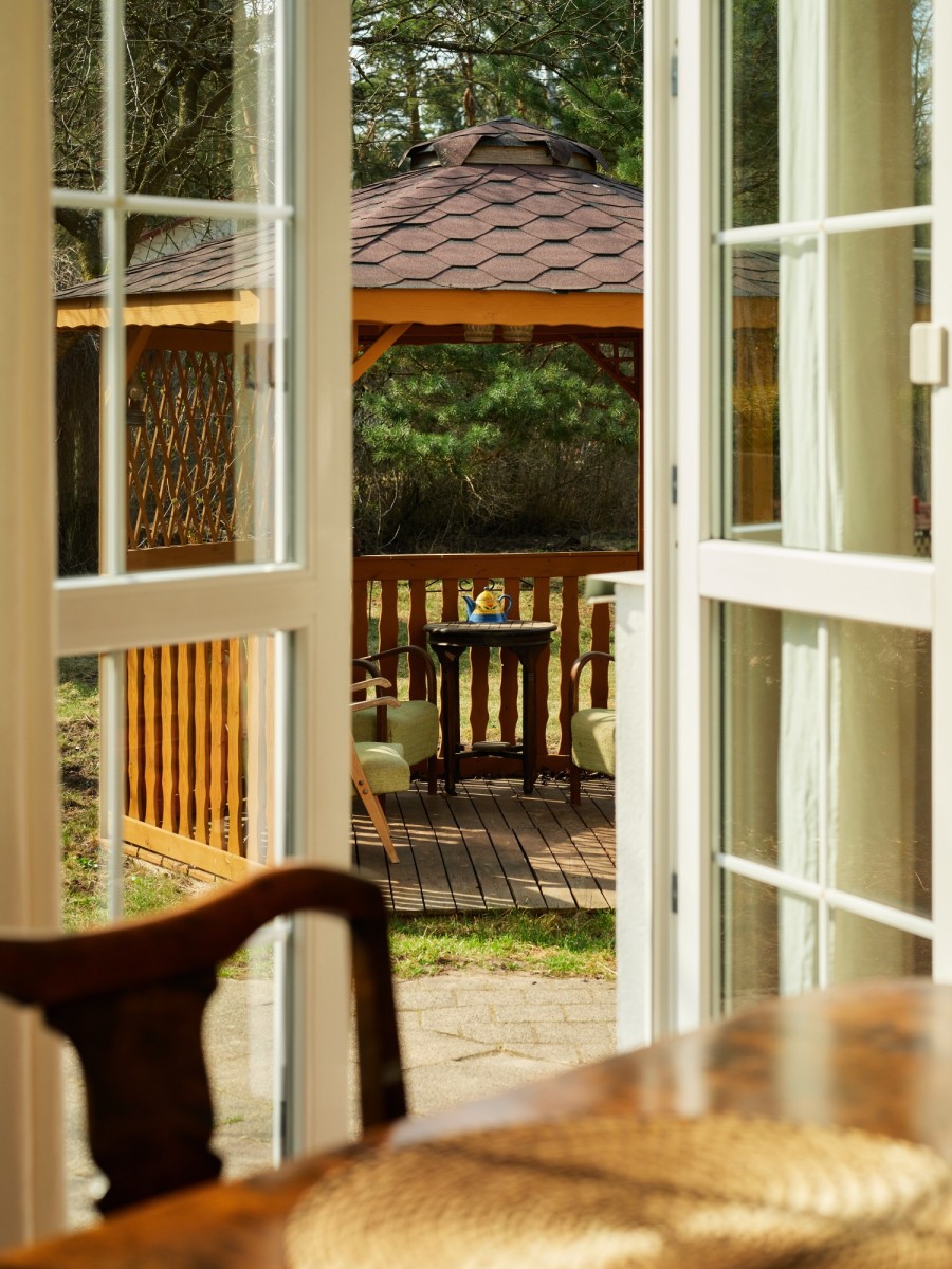 - Parter i weranda - przyjemna, naturalna strefa przejścia między domem a zielenią