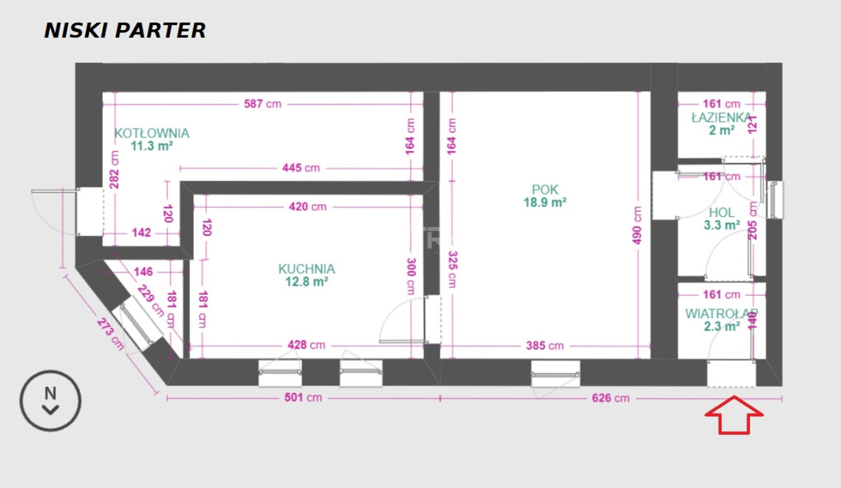 Nieruchomość może również stanowić dwurodzinny dom mieszkalny, gdyż posiada dwa niezależne wejścia.