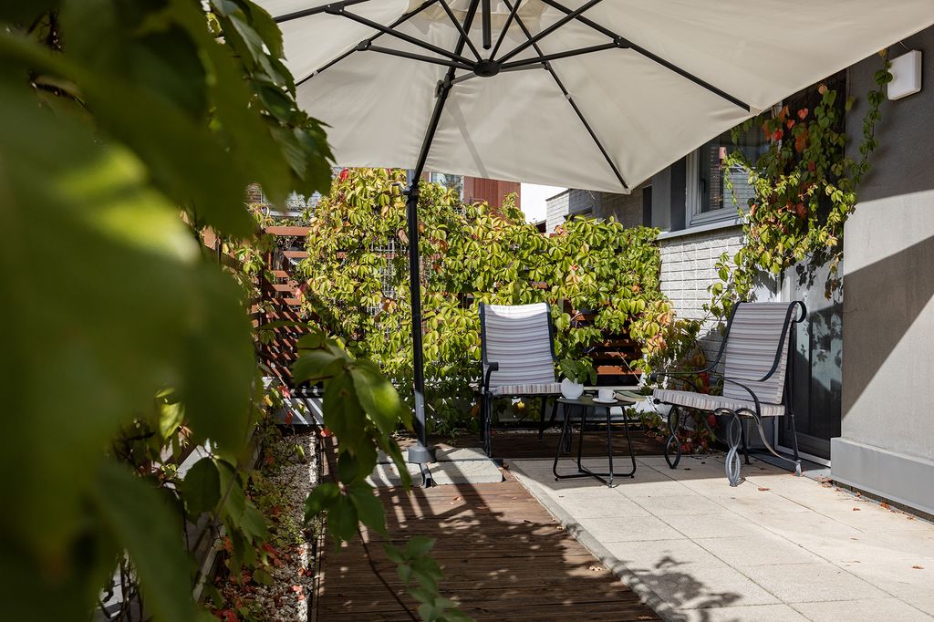 You can access the terrace directly from both the living room and the bedroom – your private zone of relaxation. Enjoy your morning coffee, read a book, or listen to the birds – all without leaving your home.