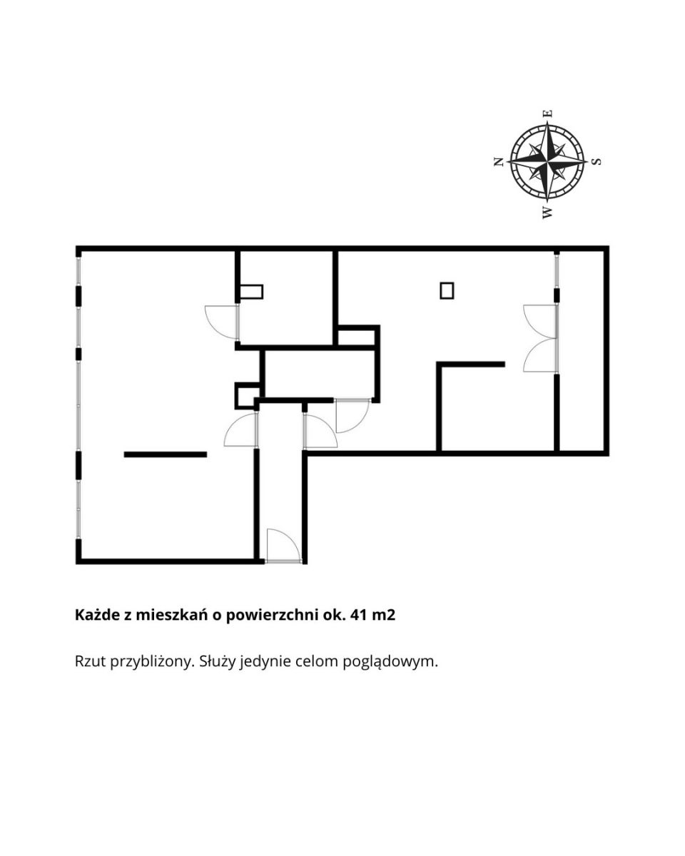 Każde z mieszkań posiada salon z aneksem kuchennym, sypialnię oraz łazienkę, co pozwala wynajmować je oddzielnie i osiągać wyższą rentowność niż w przypadku tradycyjnego najmu jednego lokalu.